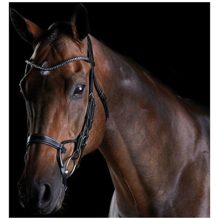 The Collegiate ComFiTec Crystal Bridle is made from high quality European leather. It has an anatomically shaped head piece which provides added comfort by distributing even pressure across the poll. With shaped padding around the horse’s ear it allows for maximum freedom and comfort, while the ergonomically designed noseband alleviates pressure on the upper jaw and molar teeth. The cheek strap and padded cheek ring alleviate the pressure of facial nerves.