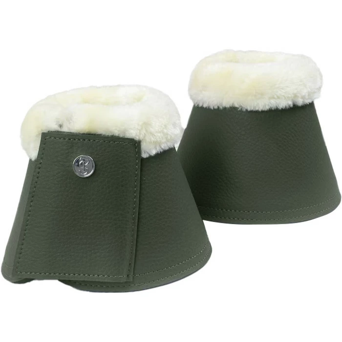 Padded bell boots with velcro fastening. Vegan leather surface and faux fur at top edge, and PS logo stud at front.