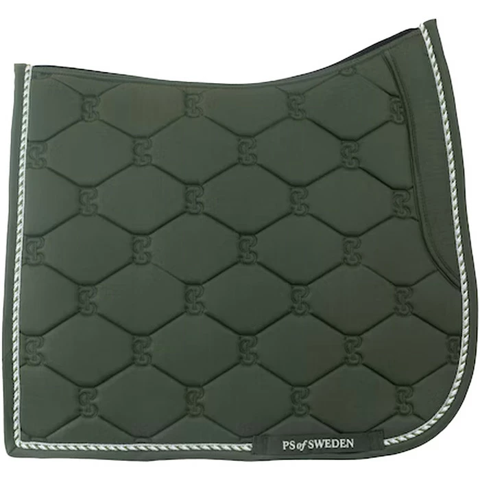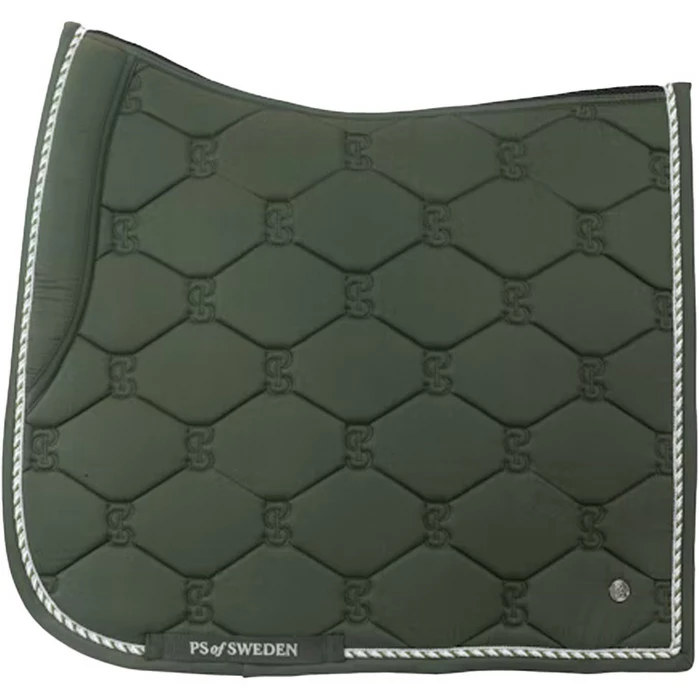 Anatomically shaped saddle pad with PS monogram quilting, cotton surface and mesh spine panel. Our saddle pads have extra space at the whithers, and our unique stop cushions that keep the saddle pad in place under the saddle. Underside is Quick-Dry material that transports moisture.