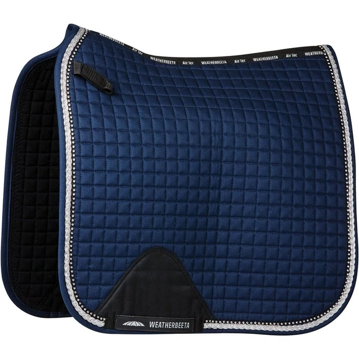 The WeatherBeeta Prime Bling Saddle Pads feature crystal detailing and rope braiding for added style and class. This durable cotton Dressage pad has a polyester wick easy lining to help keep your horse cool, dry and comfortable. The breathable mesh spine allows for extra airflow and the high wither design allows extra space where needed. Matching range available.