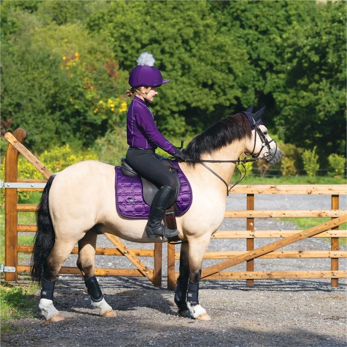 The Vision Collection from Woof Wear combines luxurious satin fabrics embroidered with designs inspired by Southern European Artisans. Whilst the inspiration is timeless, the technology is 21st Century using breathable meshes and wicking fabrics to ensure Horse comfort. Woof Wear’s Vision Pony GP Pad has a High Wither Design with a Faux Fleece wither protector and has been shaped to fit both the contours of the Pony and modern saddles.