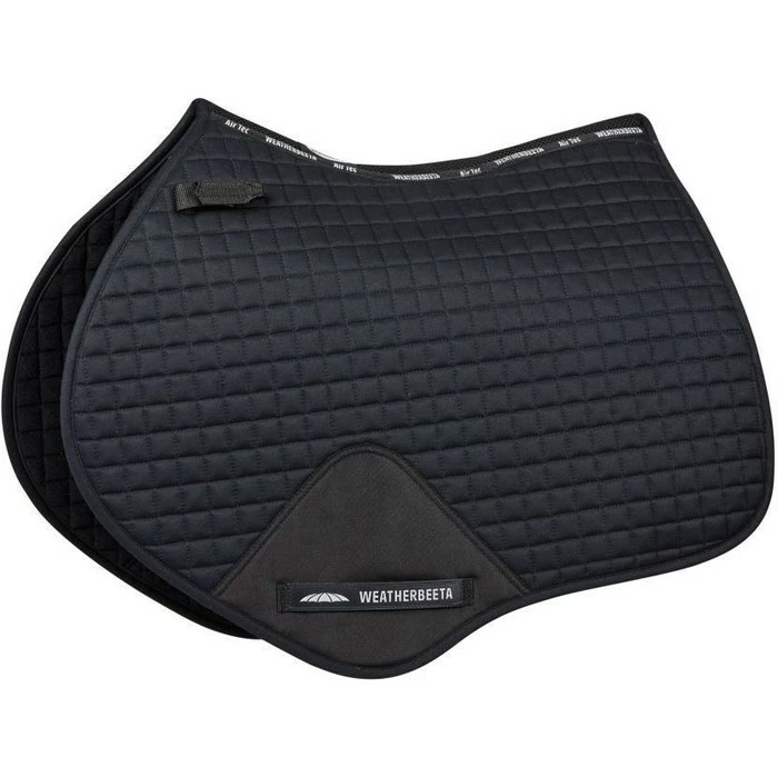 The WeatherBeeta Prime Jump Saddle Pad is a durable cotton pad with a polyester wick easy lining helping to keep your horse cool, dry and comfortable. The breathable mesh spine allows extra airflow to the horse’s back, whilst the pad is designed to fit more forward cut jumping saddles with a high wither design to allow extra space where needed. The covered girth patch offers durability and the touch tape girth loops allow for a versatile fit. Easy attachment to the D-rings is made simple with short touch tape loops for a secure fit and the high wither design allows for extra space to assure maximum comfort for the horse.