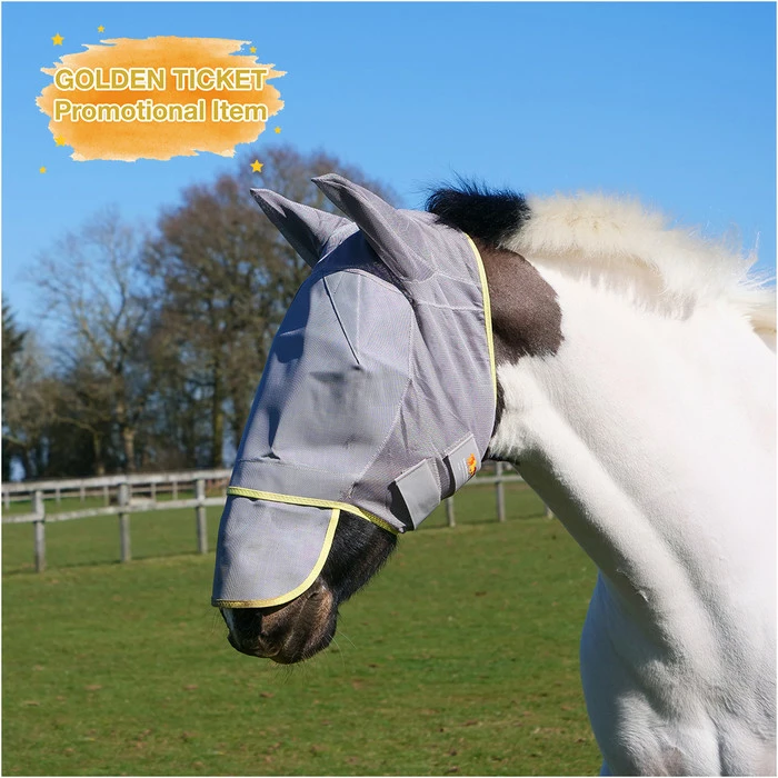 - Comfortable full face fly mask in plastic mesh with soft stretch binding