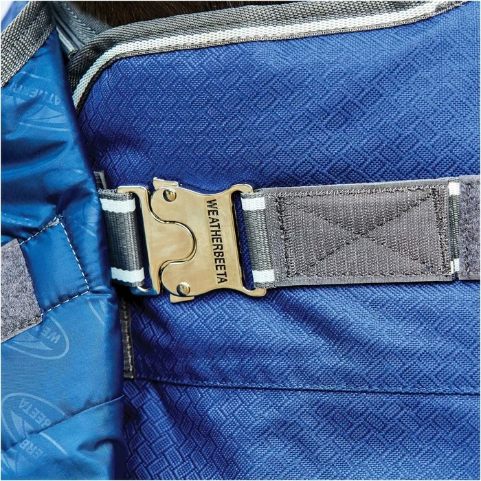 Built for high levels of freedom of movement. The WeatherBeeta ComFiTec Premier Free II Detach-A-Neck Medium is brimming with amazing features such as a full embrace wrap for huggable fit with concealed Ezi-buckle closure for optimum safety in the field, memory foam wither relief pad that contours to the horse╔s shape and lifts the rug off the wither to reduce rubbing, super strong and durable 1200 denier triple weave outer shell with repel shell coating that is both waterproof and breathable, freedom system cupped shoulder dart with forward positioned gusset for the ultimate freedom of movement and is compatible with the NEW liner system. This rug also offers 220g of polyfill a full wrap tail flap that has a 2-piece design to wrap around the horse╔s quarters, reflective gusset and insert on tail wrap for added visibility, elasticated, adjustable and removable leg straps for a secure and comfortable fit and twin low cross surcingles.