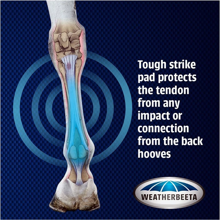The WeatherBeeta Front Cross Country Boots are shaped to the horse’s leg and moulds around the fetlock area without restraining the natural action of the horseÆs movement, providing comfort and protection. A tough strike pad protects the tendon from any impact or connection from the back of the hooves. Features include a secure, adjustable touch tape closure, breathable EVA lining with a soft durable & breathable Pro Mesh TPU outer for maximum protection. These unique & lightweight cross country boos also feature a tough PVC strike pad for protection against knocks & brushing.