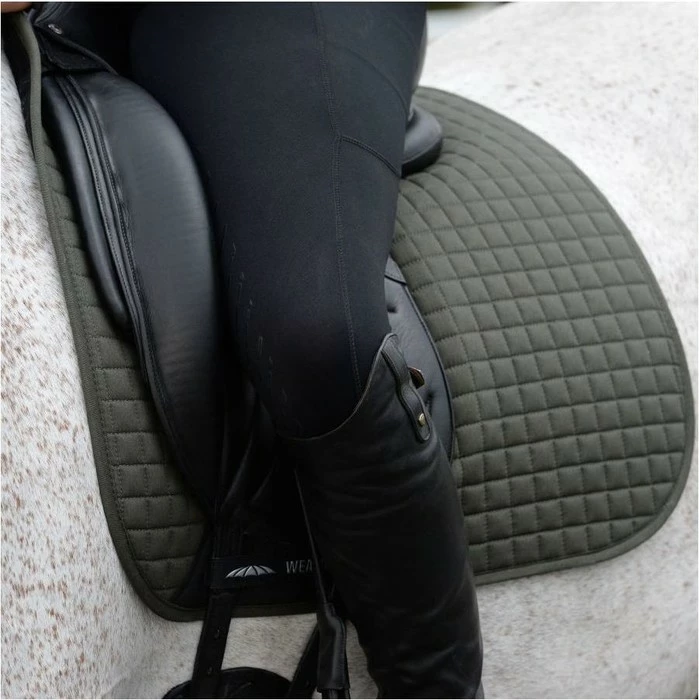 The WeatherBeeta Prime Dressage Saddle Pad is a durable cotton pad with a polyester wick easy lining helping to keep your horse cool, dry and comfortable. The breathable mesh spine allows extra airflow to the horse’s back, whilst the longer shape is designed to sit perfectly with a dressage saddle and the high wither design allows extra space where needed. The covered girth patch offers durability and the touch tape girth loops allow for a versatile fit. Easy attachment to the D-rings is made simple with short touch tape loops for a secure fit and the high wither design allows for extra space to assure maximum comfort for the horse. Machine washable at 30 degrees, DO NOT tumble dry. Matching range available.