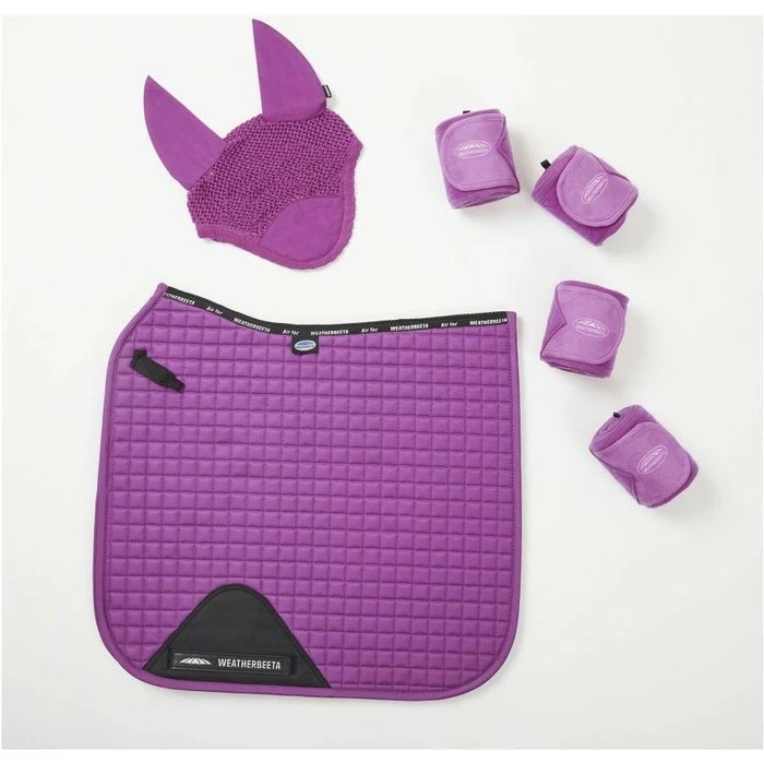 The WeatherBeeta Prime Dressage Saddle Pad is a durable cotton pad with a polyester wick easy lining helping to keep your horse cool, dry and comfortable. The breathable mesh spine allows extra airflow to the horse’s back, whilst the longer shape is designed to sit perfectly with a dressage saddle and the high wither design allows extra space where needed. The covered girth patch offers durability and the touch tape girth loops allow for a versatile fit. Easy attachment to the D-rings is made simple with short touch tape loops for a secure fit and the high wither design allows for extra space to assure maximum comfort for the horse.