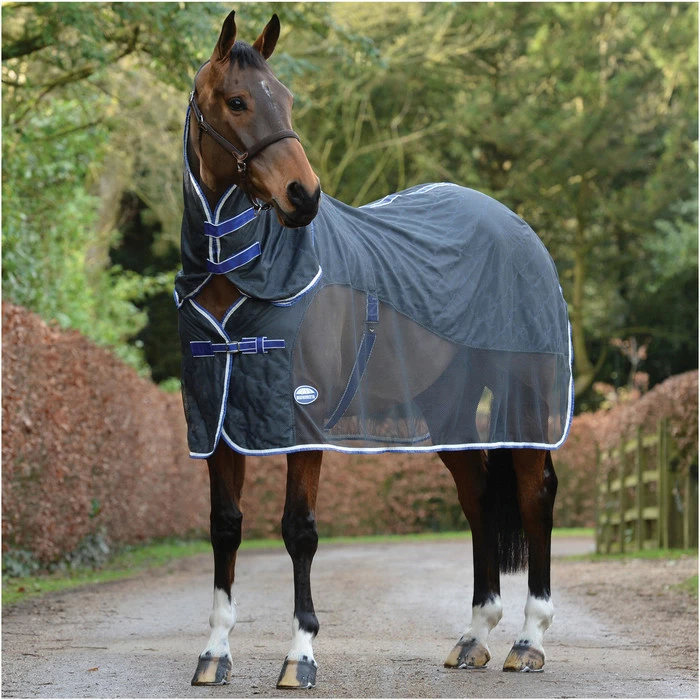 Lightweight breathable and higly wickable cooler with mesh covered Cooldry fleece upper to offer additional protection to the major muscle groups and a mesh lower for airflow. A combo neck style with hideaway neck pocket featuring touch tape closure to easily fold the neck portion away to use as a standard neck style. Boa fleece wither relief panel at the wither for additional comfort. Single adjustable buckle front closure, single hidden adjustable surcingle and tail cord.